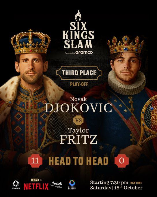 تُختتم اليوم، السبت 18 أكتوبر 2025، فعاليات بطولة "الملوك الستة" للتنس (Six Kings Slam) في الرياض، حيث تُقام مباراتان حاسمتان على ملعب "ANB أرينا" ضمن فعاليات موسم الرياض.