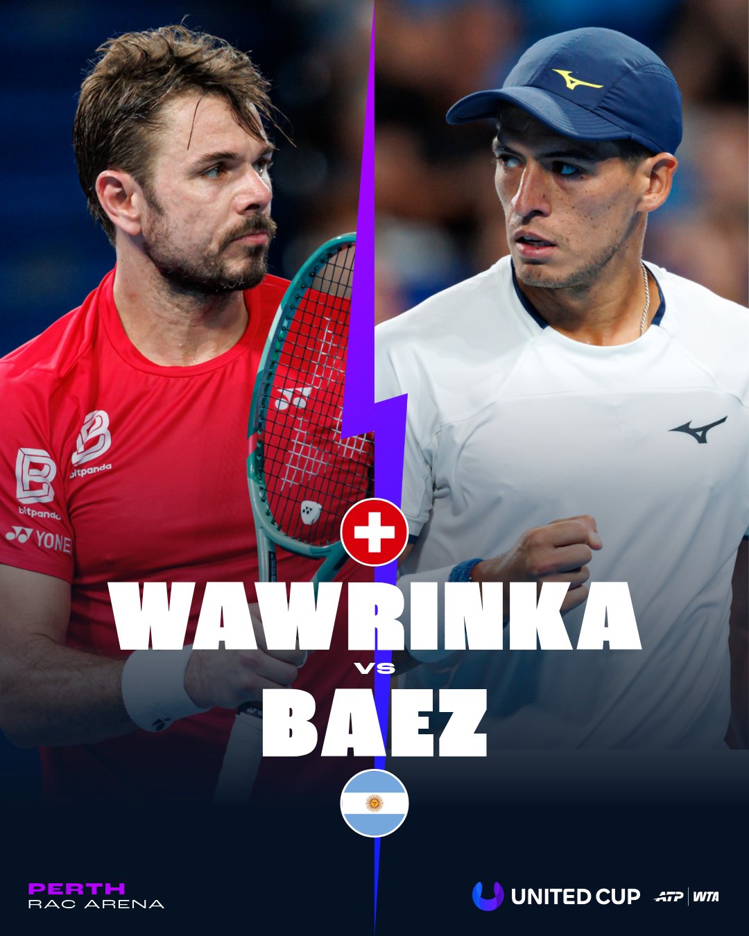 في مواجهة مثيرة بين لاعب الأرجنتين وصاحب الخبرة السويسرية، خطف سيباستيان بايز الفوز على ستان وافرينكا بمجموعتين متتاليتين، ليُعادل الكفة في اللقاء ويعيد الأمل لفريقه بعد تراجع سويسرا في المواجهة الأولى.